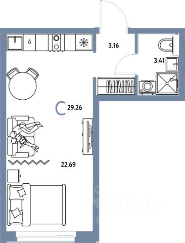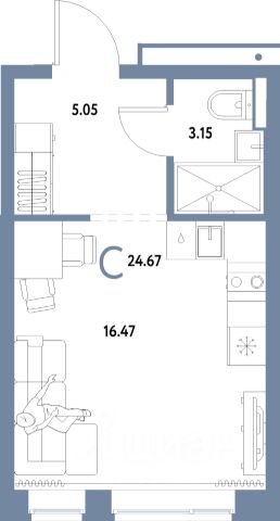 ПЛАНИРОВКА. Продуманная планировка. Просторная прихожая (5,7 кв.м), Большая комната с двумя окнами что позволяет при желании произвести зонирование на зону кухни и зону гостиной. Санузел совмещенный.