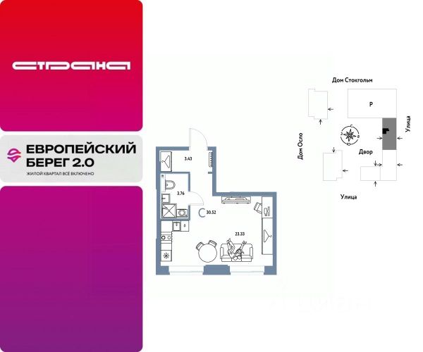 Объявление от застройщика Страна Девелопмент. Покупка квартиры защищена банком. Продается 1комнатная квартира на 4 этаже от застройщика Страна Девелопмент. Площадь квартиры 20,84 кв. м. Стоимость указана без учета акций. Европейский берег 2.0. — это продолжение легендарного жилого комплекса Европейский берег. Он включает все, что нужно для жизни, и даже больше. Этот квартал для тех, кто не готов тратить время на ненужное, жертвовать одним ради другого. Для тех, кто хочет получить все и сразу. Именно поэтому генеральная идея проекта — жилой квартал все включено. Все преимущества включены. Никаких исключений. ПРЕИМУЩЕСТВА Разнообразие планировок: от классических до квартир с мастер-спальней и террасами. Подземный паркинг с кладовыми, охраной и видеонаблюдением 24/7. Ремонт от застройщика: 5 вариантов на выбор. Закрытый двор с площадками и зонами отдыха: мост-акведук, тренажёры, лабиринты, гамаки и шезлонги. ОТДЕЛКА Базовая отделка или готовый ремонт от застройщика. В базовой отделке все черновые работы выполнены, подведены коммуникации, стены оштукатурены под маяк. В ремонт от застройщика входит 5 вариантов отделки, уже включено всё необходимое: от сантехники до кондиционера. СПОСОБЫ ПОКУПКИ Сотрудники "Страны Девелопмент" будут сопровождать вас на каждом этапе сделки, помогут получить одобрение по ипотеке или снизить ежемесячный платеж. - ипотека - материнский капитал - 100% оплата наличными - рассрочка - обмен — это выкуп вашей старой квартиры и зачисление полученных денежных средств в счет стоимости новой квартиры или в качестве первоначального взноса по ипотеке.