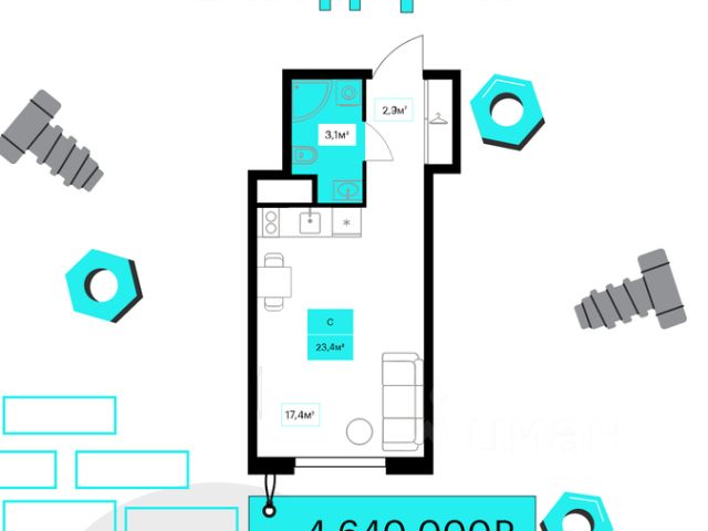 Продаётся студия в строящемся доме (Дом 6к1), срок сдачи: III-кв. 2026, общей площадью 23.4 кв.м., на 9 этаже. Новый жилой комплекс "Futuro" от застройщика "newton" расположен в г. Тюмень на Ставропольской улице.