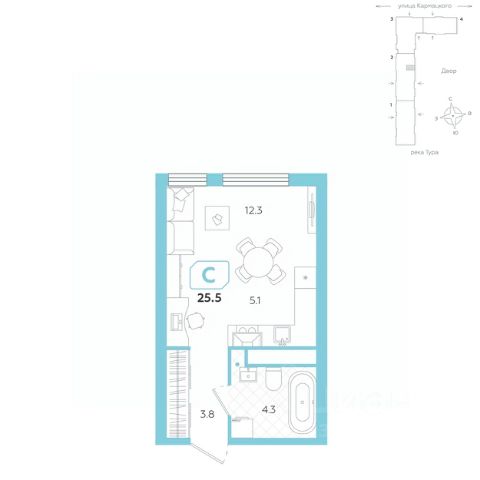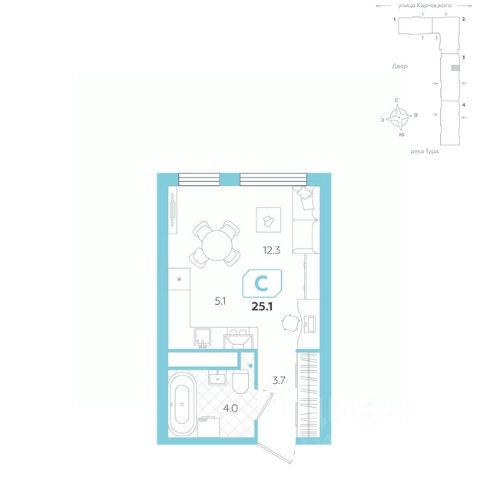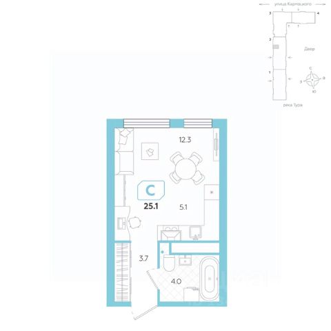 Уютная студия обладает правильной геометрией, что позволяет максимально эффективно использовать пространство. Просторная кухня-гостиная площадью становится идеальным местом для совместного времяпрепровождения с друзьями или семейных вечеров. Здесь легко расположить все необходимое: от обеденной зоны до комфортного места для отдыха, создавая атмосферу уюта и гармонии. Вместительная ванная комната площадью предлагает все удобства для комфортного использования. Коридор с предусмотренным местом под шкаф добавляет функциональности и удобства, позволяя организовать хранение вещей без ущерба для эстетики. Это решение помогает поддерживать порядок и создает уютную атмосферу в студии. Эта квартира идеально подходит для тех, кто ценит стильный, современный дизайн и хочет жить в функциональном пространстве, где каждый элемент продуман до мелочей.