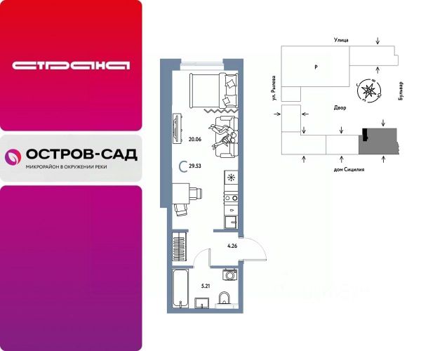 Продаётся студия в строящемся доме (Дом Тенерифе (ГП-2Я)), срок сдачи: IV-кв. 2027, общей площадью 23.54 кв.м., на 10 этаже. Новый жилой комплекс "Остров-сад" от Специализированного застройщика "Страна. Коммунистическая" расположен по адресу: г. Тюмень, по ул. Ярославская.