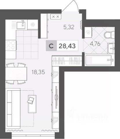Продаётся студия в строящемся доме (ГП 2 (Сергея Корепанова, 34)), срок сдачи: IV-кв. 2027, общей площадью 28.43 кв.м., на 3 этаже. Новый жилой комплекс "Скандиа. Квартал у Леса" от Специализированного застройщика "СКАНДИА У ЛЕСА" расположен в г. Тюмень на ул. Бориса Прудаева.