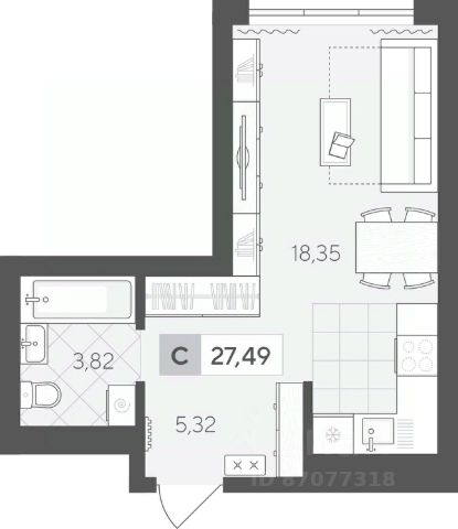 Продаётся студия в строящемся доме (ГП 2 (Сергея Корепанова, 34)), срок сдачи: IV-кв. 2027, общей площадью 27.49 кв.м., на 2 этаже. Новый жилой комплекс "Скандиа. Квартал у Леса" от Специализированного застройщика "СКАНДИА У ЛЕСА" расположен в г. Тюмень на ул. Бориса Прудаева.