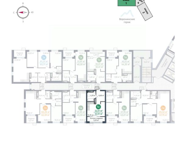 Дом монолитный, многоподъездный, переменной этажности, от 1 до 8 этажей. Квартира находится в 6-й секции высотой 4 этажа в корпусе 2. На этаже 4 квартиры. В подъезде 1 грузовой лифт. Окончание строительства - 4 квартал 2025 года. Оформление сделки по договору долевого участия.