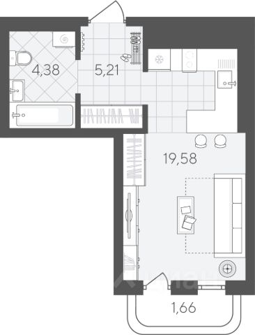 Квартира 386 на 9 этаже. "Скандиа. Квартал в Слободе" — современная комплексная застройка в развитом районе, состоящая из двух домов переменной этажности и двух многоуровневых паркингов. Доминантами проекта станут две 24-этажные секции. Квартал расположен через дорогу от гимназии 4, рядом со сквером Вьюжный и лесопарком. В шаговой доступности 2 детских сада, остановка общественного транспорта, поликлиника, магазины и кофейни. Квартира-студия площадью 30,83 кв.м Основная комната в квартире многофункциональна и легко трансформируется в гостиную, спальню или столовую.