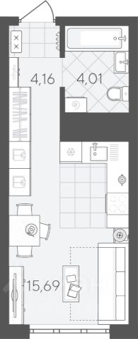 Просторная студия площадью 29,1 кв. м с рациональной планировкой расположена в жилом комплексе "Скандиа.Квартал в Слободе".
