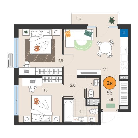 Продаётся студия в строящемся доме (ГП-1 (Ставропольская, 1)), срок сдачи: II-кв. 2026, общей площадью 35.42 кв.м., на 11 этаже. Новый жилой комплекс "Один плюс один" от Специализированного застройщика "Звезда" расположен по адресу: г. Тюмень, ул. Ставропольская, 1А.