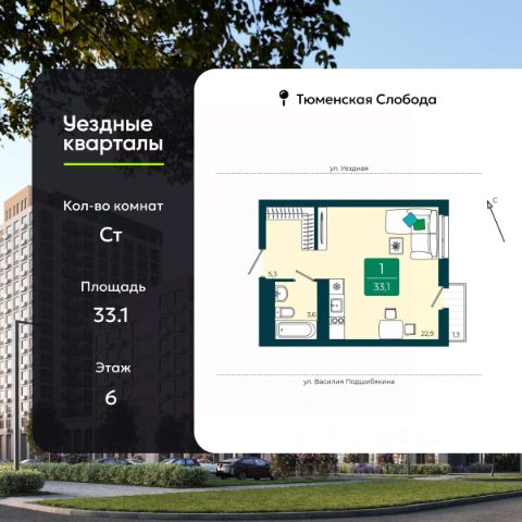 1-комн. квартира-студия в ЖК "Уездные кварталы" на 10 этаже. Квартира без отделки, после выдачи ключей можно делать ремонт. Общая площадь: 30.45 кв.м., площадь гостиной 18.47 кв.м., из которых 5 кв.м. выделено под кухонную зону. Все окна выходят на одну сторону. В квартире один балкон, один совмещенный санузел. Высота потолков 2.7 м. Дом монолитный, многоподъездный, переменной этажности, от 7 до 17 этажей. Квартира находится в 1-й секции высотой 17 этажей в корпусе ГП-3. На этаже 7 квартир. В подъезде 1 пассажирский и 1 грузовой лифт. Окончание строительства - 1 квартал 2026 года. Оформление сделки по договору долевого участия. "Уездные кварталы" - семейный жилой комплекс комфорт-класса с авторской архитектурой и трехуровневым ландшафтным озеленением. Рядом расположены крупные транспортные развязки, которые позволяют добраться в любую точку города за 15 минут. Жилой комплекс находится в современном районе с развитой инфраструктурой, на первой линии Тюменской Слободы. Вокруг есть всё необходимое в шаговой доступности: новые детские сады и школы, остановки общественного транспорта, магазины, кафе и рестораны, поликлиника, детская школа искусств, парки и спортивный комплекс. На первых этажах квартала расположена собственная коммерческая сеть, а также свой соседский центр. Проект включает 5 домов переменной этажности с более чем 100 планировками - с террасами, французскими балконами и мастер-спальнями. Закрытые дворы оборудованы интерактивными площадками для игр, спортивными зонами и местами тихого отдыха. Вдоль жилого комплекса расположен пешеходный бульвар с сухим фонтаном, а для автомобилей предусмотрен теплый паркинг. Часть квартир можно приобрести с ремонтом, мебелью и техникой от застройщика, а расходы включить в ипотечный платеж. #Zm5c4O
