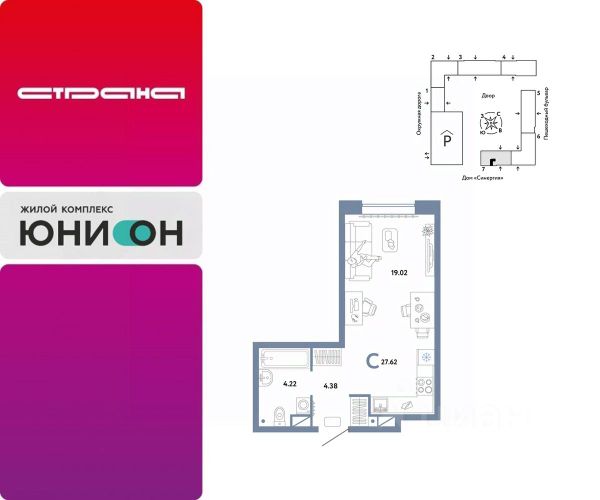 Объявление от застройщика Страна Девелопмент. Покупка квартиры защищена банком. Продается студия на 2 этаже от застройщика Страна Девелопмент. Площадь квартиры 25,71 кв. м. Юнион - проект двух застройщиков всероссийского масштаба: Страны Девелопмент и Группы Эталон. Мы объединили опыт и компетенции в девелопменте, создании экологичной среды, разработке ландшафтного дизайна, коммерческой инфраструктуры и продуманных планировок. Результатом синергии станет комфортное пространство для жизни, отдыха и восстановления. Рядом два парка с хвойными и смешанными лесами — "Затюменский" и "Плехановский бор". Летом можно устраивать пикники, а зимой кататься по лыжным трассам. ОТДЕЛКА Квартиры сдаются с предчистовой отделкой. Все грязные работы выполнены: произведена разводка электричества и отопления; выполнена стяжка пола; стены выровнены "под маяк". В квартире установлены розетки, выключатели и радиаторы. На входе — надежная стальная дверь. Вам остается только выбрать материалы и начать ремонт Доступна опция "Ремонт от застройщика". Стоимость можно включить в ипотеку. Вы можете заказать один из трех цветовых вариантов: светлый, натуральный или тёмный. КУХНЯ С ТЕХНИКОЙ Теперь дополнительно к ремонту можно заказать кухню со встроенной техникой. Эргономику и функциональное наполнение разработали под каждую планировку. ПОЛНАЯ МЕБЛИРОВКА Больше не нужно тратить время даже на подбор, доставку и сборку мебели.Вы можете включить в стоимость квартиры с ремонтом полную меблировку. Что входит в меблировку? - Кухня с техникой и сантехникой - Диван - Кровать - Шкаф в спальне - Шкаф в прихожей На консультации менеджер подскажет, какие акции действуют, и как получить одобрение по ипотеке с низкой ставкой. Более подробная информация по телефону. Застройщик ООО СЗ "Страна-Эталон". Проектные декларации на сайте наш.дом.рф.