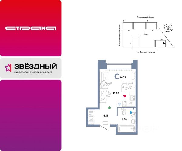 Продается студия от застройщика "Страна Девелопмент". Стоимость указана без учета акций. Квартира на 29 этаже, площадь квартиры 29 кв. м. Сдача — в 3 квартале 2025 года. Четыре 32-этажные башни со смещенными осями, объединенные общим стилобатом. На крыше дома появятся детские и спортивные площадки, зоны для релакса и отдыха. А в самом стилобате — торговая галерея и паркинг. У жителей будет свой сад с площадкой для йоги и воркаута, а еще с лаунж-зонами для чтения книг и пикников в тени деревьев. Пока вы занимаетесь спортом или отдыхаете, дети смогут вдоволь набегаться на детских площадках. "Звездном" есть планировочные решения под потребности каждой семьи. Среди их особенностей — просторные кухни-гостиные, мастер-спальни, гардеробные и кладовые. А для тех, кто ищет особенный вариант — двухуровневые квартиры с отдельным входом и квартиры с бильярдной или фитнес-залом. ОТДЕЛКА: Мы сдаем квартиры с предчистовой отделкой. Всё уже готово к ремонту: выведена разводка электричества и отопления, выполнена стяжка пола, стены выровнены. Вам останется выбрать материалы и приступить к ремонту. При покупке квартиры в ЖК "Звездный" можно включить стоимость ремонта в ипотеку. Застройщик предлагает три варианта цветовых решений: натуральный, светлый или тёмный. СПОСОБЫ ПОКУПКИ: Сотрудники Страны Девелопмент будут сопровождать вас на каждом этапе сделки, помогут получить одобрение по ипотеке или снизить ежемесячный платеж. -Ипотека -Материнский капитал -100% оплата наличными