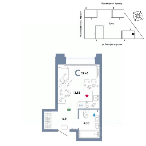 Продается студия от застройщика "Страна Девелопмент". Стоимость указана без учета акций. Квартира на 30 этаже, площадь квартиры 21,57 кв. м. Сдача — в 3 квартале 2025 года. Четыре 32-этажные башни со смещенными осями, объединенные общим стилобатом. На крыше дома появятся детские и спортивные площадки, зоны для релакса и отдыха. А в самом стилобате — торговая галерея и паркинг. У жителей будет свой сад с площадкой для йоги и воркаута, а еще с лаунж-зонами для чтения книг и пикников в тени деревьев. Пока вы занимаетесь спортом или отдыхаете, дети смогут вдоволь набегаться на детских площадках. "Звездном" есть планировочные решения под потребности каждой семьи. Среди их особенностей — просторные кухни-гостиные, мастер-спальни, гардеробные и кладовые. А для тех, кто ищет особенный вариант — двухуровневые квартиры с отдельным входом и квартиры с бильярдной или фитнес-залом. ОТДЕЛКА: Мы сдаем квартиры с предчистовой отделкой. Всё уже готово к ремонту: выведена разводка электричества и отопления, выполнена стяжка пола, стены выровнены. Вам останется выбрать материалы и приступить к ремонту. При покупке квартиры в ЖК "Звездный" можно включить стоимость ремонта в ипотеку. Застройщик предлагает три варианта цветовых решений: натуральный, светлый или тёмный. СПОСОБЫ ПОКУПКИ: Сотрудники Страны Девелопмент будут сопровождать вас на каждом этапе сделки, помогут получить одобрение по ипотеке или снизить ежемесячный платеж. -Ипотека -Материнский капитал -100% оплата наличными