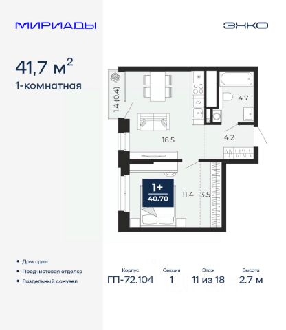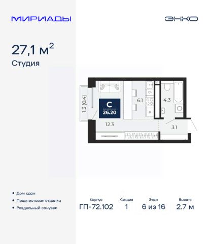 Спешите оформить бронирование, пока действует скидка, срок предложения ограничен! Стоимость квартиры указана со скидкой, ваша экономия составит 307,000 руб. Звоните, наши менеджеры вам все расскажут. 1-комн. квартира в ЖК "Мириады" на 13 этаже. Общая площадь: 40.74 кв.м. Высота потолков 2.7 м. Дом монолитный, двухподъездный, переменной этажности, от 14 до 16 этажей. Квартира находится во 2-й секции высотой 16 этажей в корпусе ГП-72.107. На этаже 10 квартир. В подъезде 1 пассажирский и 1 грузовой лифт. Окончание строительства - 3 квартал 2028 года. Оформление сделки по договору долевого участия. Вселенная бесконечных историй. Ранее невиданный Тюмени масштаб: территория 240 гектаров и 1 650 000 м² застройки. Мириады это город масштабных перемен и больших возможностей. Город зеленых рощ и зеркальных озер. Город для работы, учебы и развлечений. Город для детей и их родителей. Город для всех и каждого. Проект расположен в районе Мыс рядом с ТРЦ "Тюмень Сити Молл" в границах улицы Тимофея Чаркова, Тобольского тракта и объездной дороги. Срок полного освоения территории - до 2034 года. #Z6DDFb