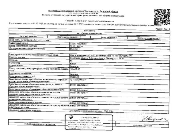 Возможна рассрочка под процент с первоначальным взносом (срок, условия обсуждается). Квартира со свободной планировкой в Тюменской области.