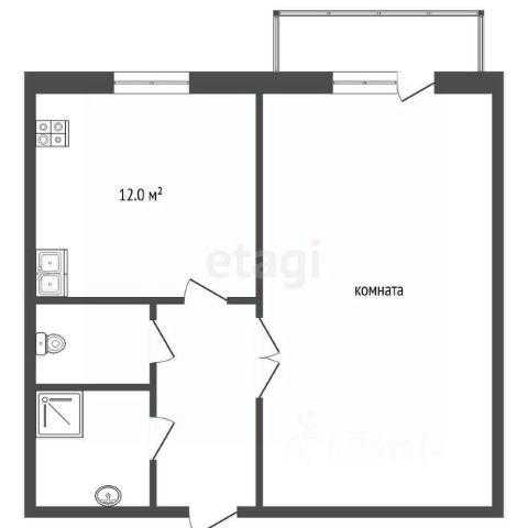 • Гостиная- комната — 19,5 м² (!больше, чем у большинства аналогов — 18 м²)