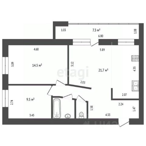 • Большая кухня — 10,5 м² (в то время как у конкурентов — всего 89 м²)