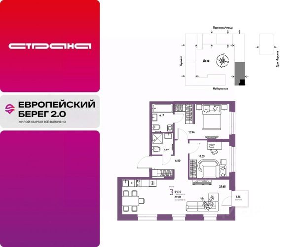 Объявление от застройщика Страна Девелопмент. Покупка квартиры защищена банком. Продается 1комнатная квартира на 16 этаже от застройщика Страна Девелопмент. Площадь квартиры 33,15 кв. м. Стоимость указана без учета акций. Европейский берег 2.0. — это продолжение легендарного жилого комплекса Европейский берег. Он включает все, что нужно для жизни, и даже больше. Этот квартал для тех, кто не готов тратить время на ненужное, жертвовать одним ради другого. Для тех, кто хочет получить все и сразу. Именно поэтому генеральная идея проекта — жилой квартал все включено. Все преимущества включены. Никаких исключений. ПРЕИМУЩЕСТВА Разнообразие планировок: от классических до квартир с мастер-спальней и террасами. Подземный паркинг с кладовыми, охраной и видеонаблюдением 24/7. Ремонт от застройщика: 5 вариантов на выбор. Закрытый двор с площадками и зонами отдыха: мост-акведук, тренажёры, лабиринты, гамаки и шезлонги. ОТДЕЛКА Базовая отделка или готовый ремонт от застройщика. В базовой отделке все черновые работы выполнены, подведены коммуникации, стены оштукатурены под маяк. В ремонт от застройщика входит 5 вариантов отделки, уже включено всё необходимое: от сантехники до кондиционера. СПОСОБЫ ПОКУПКИ Сотрудники "Страны Девелопмент" будут сопровождать вас на каждом этапе сделки, помогут получить одобрение по ипотеке или снизить ежемесячный платеж. - ипотека - материнский капитал - 100% оплата наличными - рассрочка - обмен — это выкуп вашей старой квартиры и зачисление полученных денежных средств в счет стоимости новой квартиры или в качестве первоначального взноса по ипотеке. Продается квартира на улице Береговая в городе Тюмень.