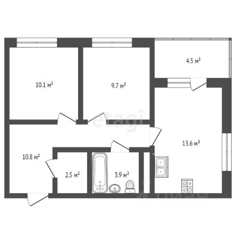 8.застекленный балкон 3 м2;