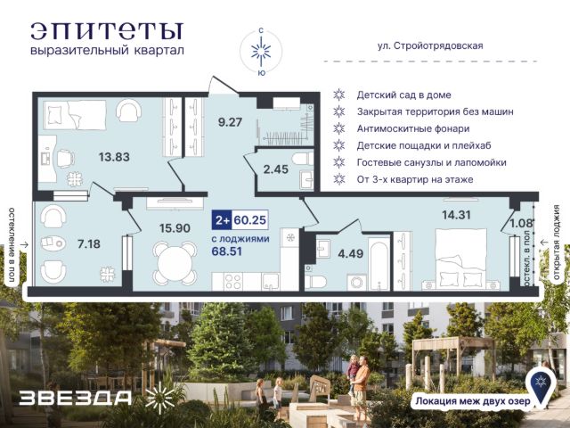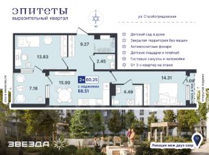 Продаётся 3-комнатная квартира в строящемся доме (ГП-6 (Свиридова, 11к1)), срок сдачи: IV-кв. 2027, общей площадью 65.3 кв.м., на 2 этаже. Архитектура Квартал представлен 4-этажными домами. Архитектура проникнута близостью к природе. Естественные цвета гармонично вписывают дома в существующий ландшафт, поддерживают настроение и позволяют отдохнуть от городской пестроты. Квартиры с терассой Все квартиры на первом этаже сделаны с придомовой террасой. Здесь можно поставить детям бассейн, загорать, заниматься йогой, выращивать цветы или организовать небольшую снежную горку зимой. Уютные подъезды В подъезде просторно, светло и уютно. При входе нет ступеней и пандусов. Входные группы остекленные. В каждой секции есть колясочная-велосипедная. Это поможет сэкономить пространство квартиры для более полезных для дома вещей. Центр для общения В квартале откроется соседский центр. Здесь будет приятно и интересно проводить досуг, общаться с соседями, учиться новому и решать бытовые вопросы.