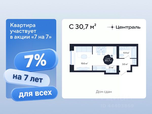 Условия покупки для этой квартиры: Cтавка 7% для всех. Срок ставки 7 лет. Ежемесячный платеж 39 247 руб. в месяц. Первоначальный взнос 20% или 1 475 691 руб Студия площадью 30,7 м² Планировка правильной формы и без лишних квадратов. Всё пространство — полезное. В комнате продумано функциональное зонирование. Для кухни подготовлена ниша под гарнитур и место для обеденного стола. Зона отдыха отделена перегородками для удобства и приватности. В квартире выполнена предчистовая отделка, поэтому ремонт пройдёт проще и быстрее. Стены выровнены и оштукатурены, пол готов к финишному покрытию. Установлены входная сейф-дверь, пластиковые окна, розетки и выключатели. Квартал построен в районе ул. Максима Горького. Все дома сданы. В паре минут — набережная и пруд с парящим променадом. Вся инфраструктура для жизни тоже близко: школы, детские сады, бассейн, гипермаркет и торговый центр в радиусе 10 минут пешком. В квартале зелёные дворы без машин: здесь безопасно играть детям и комфортно отдыхать взрослым. Для автомобилей рядом с кварталом строится многоуровневый паркинг. Для безопасности по периметру домов работает видеонаблюдение. ЖК построил ПСК Дом девелопмент — застройщик с фокусом на развитие Тюмени с 26-летним опытом на рынке недвижимости. Способы покупки: — ипотечные программы — обмен вашего жилья на новую квартиру — дистанционная покупка — рассрочка Узнать дополнительную информацию и записаться на встречу в офисе продаж можно по номеру, указанному в объявлении.