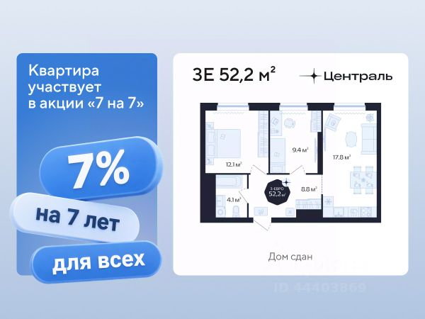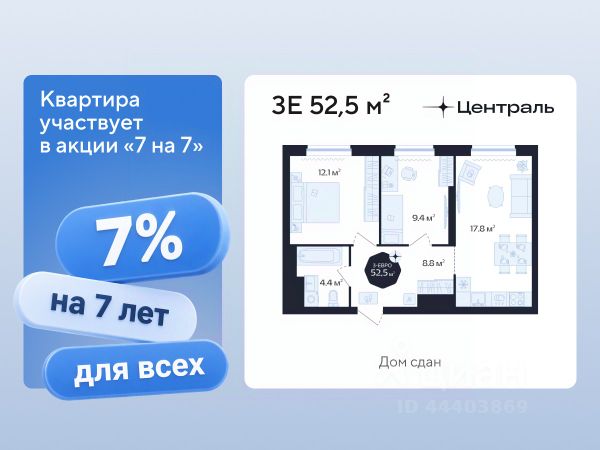 Условия покупки для этой квартиры: Cтавка 7% для всех. Срок ставки 7 лет. Ежемесячный платеж 56 143 руб. в месяц. Первоначальный взнос 20% или 2 110 989 руб Евротрехкомнатная квартира площадью 52,5 м² Планировка правильной формы — в такой удобно расположены комнаты, больше возможностей для зонирования пространства и легче поставить мебель. В кухне-гостиной разграничены зоны для готовки и отдыха благодаря нише для кухонного гарнитура. В спальне увеличенное окно, а в детской предусмотрена ниша для шкафа. В квартире выполнена предчистовая отделка, поэтому ремонт пройдёт проще и быстрее. Стены выровнены и оштукатурены, пол готов к финишному покрытию. Установлены входная сейф-дверь, пластиковые окна, розетки и выключатели. Квартал построен в районе ул. Максима Горького. Все дома сданы. В паре минут — набережная и пруд с парящим променадом. Вся инфраструктура для жизни тоже близко: школы, детские сады, бассейн, гипермаркет и торговый центр в радиусе 10 минут пешком. В квартале зелёные дворы без машин: здесь безопасно играть детям и комфортно отдыхать взрослым. Для автомобилей рядом с кварталом строится многоуровневый паркинг. Для безопасности по периметру домов работает видеонаблюдение. ЖК построил ПСК Дом девелопмент — застройщик с фокусом на развитие Тюмени с 26-летним опытом на рынке недвижимости. Способы покупки: — ипотечные программы — обмен вашего жилья на новую квартиру — дистанционная покупка — рассрочка Узнать дополнительную информацию и записаться на встречу в офисе продаж можно по номеру, указанному в объявлении.