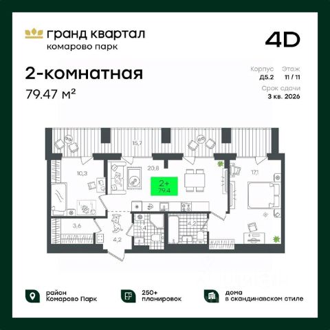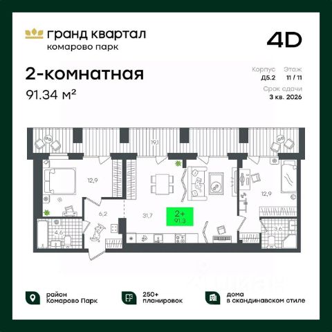 Продаётся 3-комнатная квартира в строящемся доме (Д5.2 (Малкова, 5)), срок сдачи: III-кв. 2026, общей площадью 91.25 кв.м., на 11 этаже. Компания 4D приступила к строительству нового жилого комплекса "Гранд квартал". Новый ЖК находится в зеленой зоне Калининского района, южнее микрорайона Тюменская слобода.