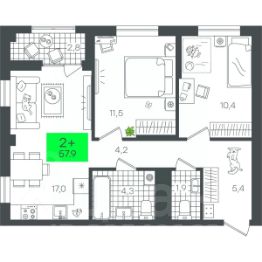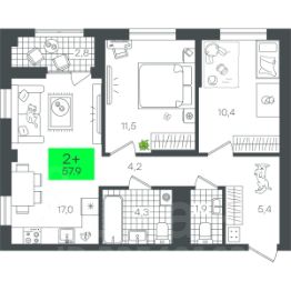 Продаётся 2-комнатная квартира в строящемся доме (Д4.1 (Малкова, 3)), срок сдачи: III-кв. 2026, общей площадью 57.91 кв.м., на 12 этаже. Компания 4D приступила к строительству нового жилого комплекса "Гранд квартал". Новый ЖК находится в зеленой зоне Калининского района, южнее микрорайона Тюменская слобода.