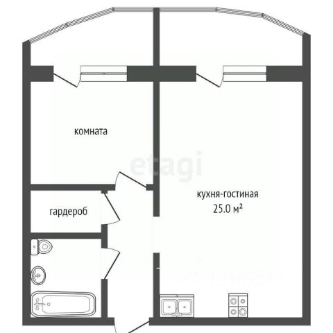 Жилая площадь — 25 м²: зонирована на две части, меньшая из которых отлично подойдёт под гардеробную или детскую.
