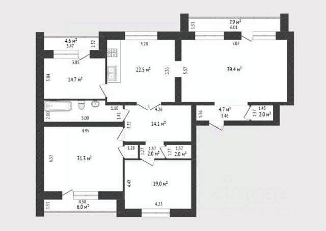 В квартире выполнен качественный современный ремонт, стены оклеены обоями, натяжные матовые потолки во всех х, на полу ламинат, коридор и кухня напольное покрытие - керамогранит. Санузел раздельный в плитке. Теплый пол - кухня и санузел. В квартире потолки высотой 2.85 м. Комнаты изолированы, правильной формы, в каждой из комнат имеется застекленная лоджия (6,86 м2, 4,38 м2 и 4,89 м2), кондиционеры фирмы НITACHI. Окна расположены на восток (во двор) и запад (на улицу Мельничная). Дом 10-ти этажный, кирпичного исполнения, 2008 года постройки, закрытый двор. Чистые подъезды, спокойные не шумные соседи. Дом расположен в тихом месте, в дали от шумных дорог. На первом этаже дома расположены медицинская клиника "Акцент", центр ногтевого сервиса Brilliance, юридическая компания. В шаговой доступности Пятерочка, OZON, Яндекс маркет, Перекресток, Метрополис, ТРЦ "Гудвин", ТРЦ "Магеллан", Тюменский областной драмтеатр, площадь 400-летия Тюмени, Тюменский индустриальный университет.
