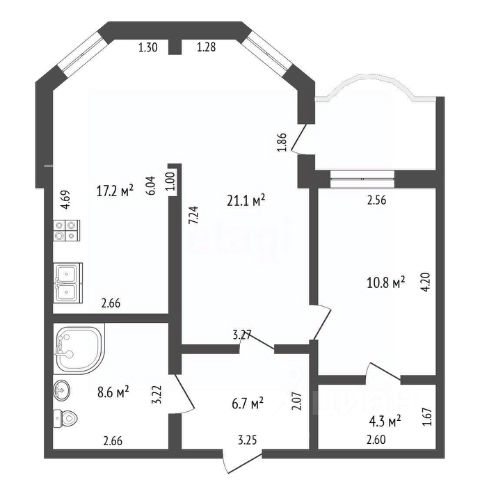 Квартира отличается продуманностью пространства и функциональностью помещений.