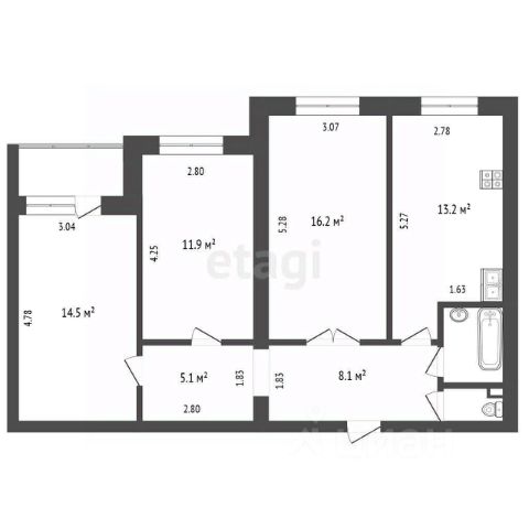 Просторная большая, спокойно встанет кровать 180*200 и детские кроватки, комод и шкаф (помимо того, что уже есть угловой).