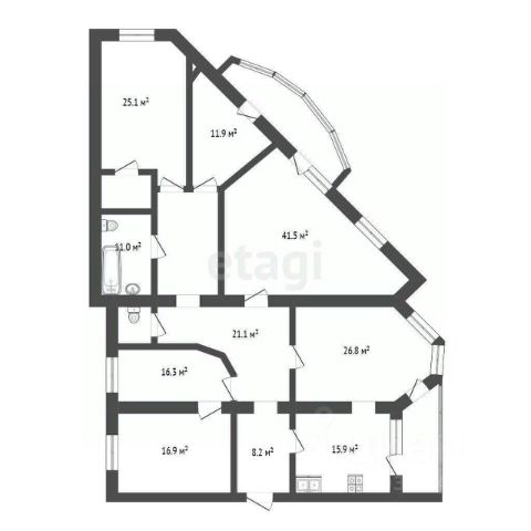 Просторная 128 кв. м. с большой кухней гостиной около 50 кв.м. и двумя просторными спальнями. Небанальная функциональная планировка, где каждый метр пространства продуман для удобства и комфорта, огромные полу-витражные окна и аристократическая высота потолков (свыше 3 метров) усиливают ощущение воздуха и простора.