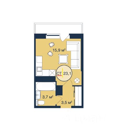 Квартира расположена 18 этаже кирпичного дома с шикарным видом из окна.