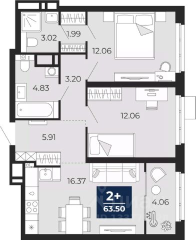 Просторная 2-комн. квартира с предчистовой отделкой в ЖК "Прео" на 2 этаже. Общая площадь: 63.68 кв.м., жилая: 26.74 кв.м., площадь просторной кухни-столовой: 18.04 кв.м. Комнаты изолированные, все окна выходят на одну сторону. В квартире одна лоджия, один совмещенный и один раздельный санузел. Высота потолков 2.7 м. Дом монолитный, двухподъездный, переменной этажности, от 12 до 20 этажей. Квартира находится в 1-й секции высотой 12 этажей в корпусе 214. На этаже 8 квартир. В подъезде 1 пассажирский и 1 грузовой лифт. Окончание строительства - 4 квартал 2027 года. Оформление сделки по договору долевого участия. Преображенский — один из самых привлекательных районов для жизни! Это полностью самостоятельный жилой район с точки зрения инфраструктуры. Преображенский находится между Московским и Червишевским трактами в квартале улиц Закалужская — Вьюжная — Александра Протозанова. Не нужно ждать, когда появится инфраструктура — переезжайте на всё готовое. Вблизи расположены действующие школа и детский сад. В этом году откроется еще один сад, а в следующем году — школа. По соседству с Преображенским запланировано строительство городского парка "Комарово" площадью 38 гектар. За 10 минут можно доехать на автомобиле до крупных ТРЦ: "Лента", "Кристалл", "Леруа Мерлен", "Метро" и "Ашан". С 2018 года в районе открыт Соседский центр — пространство, созданное для формирования добрососедской среды, совместного досуга, общения и реализации соседских инициатив. Здесь проходят встречи соседей, а также сами жители района организовывают мероприятия. Организатором такого события может стать любой желающий. В квартирах выполнена качественная предчистовая отделка. Гладкие стены с финишным выравниванием по маякам. Ровный потолок для установки натяжного потолка. Установлены пятикамерные окна с двойным стеклопакетом (3 стекла). Дизайнерские холлы с видеонаблюдением, безбарьерным и прозрачным входом всегда светло и спокойно. На первом этаже есть просторные колясочные, где все жители могут оставлять свои коляски и велосипеды. В Преображенском есть всё, что нужно для активного отдыха и занятий спортом. Мы сделали большое футбольное поле с безопасным покрытием. Также установили хоккейный корт, который оборудован по всем необходимым стандартам. Во дворах можно делать упражнения на специальных площадках с турниками. Весь район мы обустроили велодорожками, которые связаны в единый маршрут. У нас есть сухие фонтаны, бьющие из земли, деревья, веревки, сетки, скалодром, газон, песок и резинка — осталось просто дать своему ребенку право на свободную игру. По-настоящему хорошие дворы — это те, которые дети предпочитают соцсетям и телевизору. Аккредитация в банках: ПАО "Газпромбанк", "Сбербанк России", ПАО "Банк Уралсиб", ПАО Банк "ВТБ", ОАО "Альфа-Банк" и других. #zmv9MM Купить квартиру в микрорайоне Тюменская Слобода в городе Тюмень.