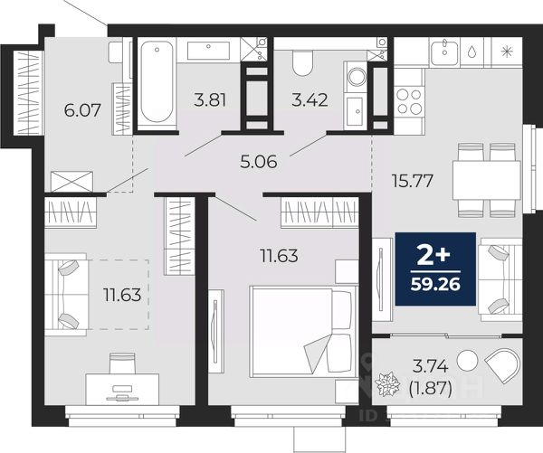 Двухкомнатная квартира с предчистовой отделкой в ЖК "Прео" на 15 этаже. Общая площадь: 59.26 кв.м., жилая: 23.26 кв.м., площадь просторной кухни-столовой: 15.77 кв.м. Квартира угловая, окна oбecпeчивaют paвнoмepнoe ocвeщeниe в тeчeниe дня. В квартире одна лоджия, один раздельный санузел. Высота потолков 2.7 м. Дом монолитный, двухподъездный, высотой 22 этажа. Квартира находится во 2-й секции в корпусе 207. На этаже 8 квартир. В подъезде 1 пассажирский и 1 грузовой лифт. Окончание строительства - 4 квартал 2025 года. Оформление сделки по договору долевого участия. Преображенский — один из самых привлекательных районов для жизни! Это полностью самостоятельный жилой район с точки зрения инфраструктуры. Преображенский находится между Московским и Червишевским трактами в квартале улиц Закалужская — Вьюжная — Александра Протозанова. Не нужно ждать, когда появится инфраструктура — переезжайте на всё готовое. Вблизи расположены действующие школа и детский сад. В этом году откроется еще один сад, а в следующем году — школа. По соседству с Преображенским запланировано строительство городского парка "Комарово" площадью 38 гектар. За 10 минут можно доехать на автомобиле до крупных ТРЦ: "Лента", "Кристалл", "Леруа Мерлен", "Метро" и "Ашан". С 2018 года в районе открыт Соседский центр — пространство, созданное для формирования добрососедской среды, совместного досуга, общения и реализации соседских инициатив. Здесь проходят встречи соседей, а также сами жители района организовывают мероприятия. Организатором такого события может стать любой желающий. В квартирах выполнена качественная предчистовая отделка. Гладкие стены с финишным выравниванием по маякам. Ровный потолок для установки натяжного потолка. Установлены пятикамерные окна с двойным стеклопакетом (3 стекла). Дизайнерские холлы с видеонаблюдением, безбарьерным и прозрачным входом всегда светло и спокойно. На первом этаже есть просторные колясочные, где все жители могут оставлять свои коляски и велосипеды. В Преображенском есть всё, что нужно для активного отдыха и занятий спортом. Мы сделали большое футбольное поле с безопасным покрытием. Также установили хоккейный корт, который оборудован по всем необходимым стандартам. Во дворах можно делать упражнения на специальных площадках с турниками. Весь район мы обустроили велодорожками, которые связаны в единый маршрут. У нас есть сухие фонтаны, бьющие из земли, деревья, веревки, сетки, скалодром, газон, песок и резинка — осталось просто дать своему ребенку право на свободную игру. По-настоящему хорошие дворы — это те, которые дети предпочитают соцсетям и телевизору. Аккредитация в банках: ОАО "Альфа-Банк", ПАО Банк "ВТБ", ПАО "Банк Уралсиб", "Сбербанк России", ПАО "Газпромбанк" и других. #zuF1ff Купить квартиру в микрорайоне Тюменская Слобода в городе Тюмень.