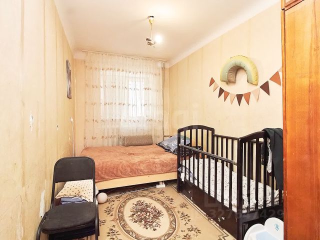 Детская комната(35кв.м)-пол ламинат, выход на балкон застеклен, балкон(6,8кв.м) плитка без подогрева, окна выходят во двор. Комната оборудована встроенной мебелью.