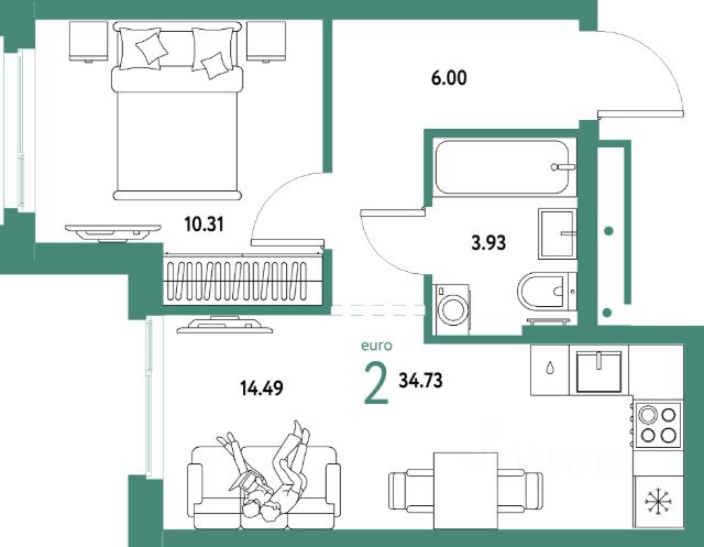 Продаётся 2-комнатная квартира в сданном доме (Кореневского, 5 (Дом "Центральный" ГП-12)), срок сдачи: I-кв. 2025, общей площадью 39.1 кв.м., на 13 этаже. Новый микрорайон "Домашний" от группы компаний "Страна Девелопмент" расположен в Калининском округе Тюмени, в районе аэропорта "Плеханово".