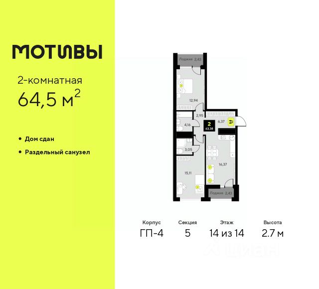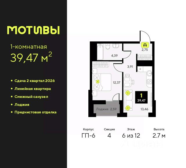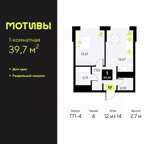 Просторная 1-комн. квартира в ЖК "Мотивы" на 14 этаже. Общая площадь: 35.85 кв.м. Высота потолков 2.7 м. Квартира предоставляется в чистовой отделке: на полу ламинат, на стенах флизелиновые обои под покраску, санузел отделан плиткой, установлена вся сантехника, краны, смесители, душевые лейки и т.д., также в комплектацию входит кондиционер, видеодомофон, вызывная панель домофона уже установлена и подключена к работе. Выбирая место для жизни, вы хотите, чтобы оно было лучше и удобнее. Мы же хотим, чтобы каждый смог получить все, что пожелает при переезде в новый дом. Это наша цель, миссия и главный мотив. Пара шагов от дома и вы оказываетесь в парке, где можно совершить утреннюю пробежку или неспешно прогуляться после рабочего дня. Подъезды в домах сквозные, а входные группы расположены на уровне тротуара - в дом удобно заходить как с улицы, так и со двора. Домофон в тёплом тамбуре не позволит вам замёрзнуть, пока вы открываете двери. А хорошее настроение обеспечат светлые холлы, оформленные в едином стиле. Больше никакой грязи в квартире. Велосипеды и коляски можно оставить в колясочных, которые мы сделали по-настоящему просторными. А обладатели четверногих друзей смогут помыть их лапки после прогулки в специально оборудованных лапомойных комнатах. Квартира с видом на бескрайний природный простор или на урбанистический пейзаж? Легко! Мы создали безопасный двор, где можно без лишних тревог оставить детей играть во дворе. Закрытая от автомобилей территория и камеры видеонаблюдения - гарант вашего спокойствия. #zWaCgB