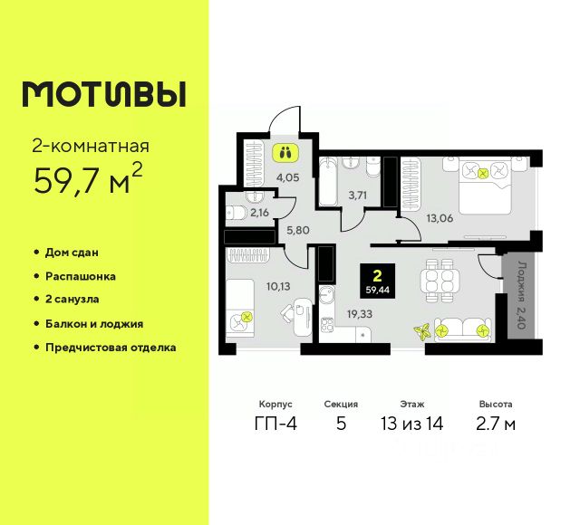 Просторная 1-комн. квартира с первичной отделкой в ЖК "Мотивы" на 8 этаже. Общая площадь: 37.45 кв.м., жилая: 12.01 кв.м., площадь просторной кухни-столовой: 15.83 кв.м. Все окна выходят на одну сторону. В квартире одна лоджия, один совмещенный санузел. Высота потолков 2.7 м. Квартира предоставляется в чистовой отделке: на полу ламинат, на стенах флизелиновые обои под покраску, санузел отделан плиткой, установлена вся сантехника, краны, смесители, душевые лейки и т.д., также в комплектацию входит кондиционер, видеодомофон, вызывная панель домофона уже установлена и подключена к работе. Выбирая место для жизни, вы хотите, чтобы оно было лучше и удобнее. Мы же хотим, чтобы каждый смог получить все, что пожелает при переезде в новый дом. Это наша цель, миссия и главный мотив. Пара шагов от дома и вы оказываетесь в парке, где можно совершить утреннюю пробежку или неспешно прогуляться после рабочего дня. Подъезды в домах сквозные, а входные группы расположены на уровне тротуара - в дом удобно заходить как с улицы, так и со двора. Домофон в тёплом тамбуре не позволит вам замёрзнуть, пока вы открываете двери. А хорошее настроение обеспечат светлые холлы, оформленные в едином стиле. Больше никакой грязи в квартире. Велосипеды и коляски можно оставить в колясочных, которые мы сделали по-настоящему просторными. А обладатели четверногих друзей смогут помыть их лапки после прогулки в специально оборудованных лапомойных комнатах. Квартира с видом на бескрайний природный простор или на урбанистический пейзаж? Легко! Мы создали безопасный двор, где можно без лишних тревог оставить детей играть во дворе. Закрытая от автомобилей территория и камеры видеонаблюдения - гарант вашего спокойствия. #Z4d3tV