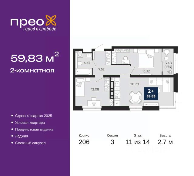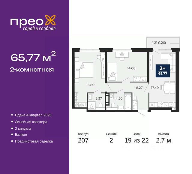 Просторная однокомнатная квартира с предчистовой отделкой в ЖК "Прео" на 17 этаже. Общая площадь: 41.23 кв.м., жилая: 17.67 кв.м., площадь просторной кухни-столовой: 12.3 кв.м. Все окна выходят на одну сторону. В квартире один балкон, один совмещенный санузел. Высота потолков 2.7 м. Дом монолитный, трехподъездный, переменной этажности, от 14 до 22 этажей. Квартира находится во 2-й секции высотой 22 этажа в корпусе 208. На этаже 10 квартир. В подъезде 1 пассажирский и 1 грузовой лифт. Окончание строительства - 4 квартал 2025 года. Оформление сделки по договору долевого участия. Преображенский — один из самых привлекательных районов для жизни! Это полностью самостоятельный жилой район с точки зрения инфраструктуры. Преображенский находится между Московским и Червишевским трактами в квартале улиц Закалужская — Вьюжная — Александра Протозанова. Не нужно ждать, когда появится инфраструктура — переезжайте на всё готовое. Вблизи расположены действующие школа и детский сад. В этом году откроется еще один сад, а в следующем году — школа. По соседству с Преображенским запланировано строительство городского парка "Комарово" площадью 38 гектар. За 10 минут можно доехать на автомобиле до крупных ТРЦ: "Лента", "Кристалл", "Леруа Мерлен", "Метро" и "Ашан". С 2018 года в районе открыт Соседский центр — пространство, созданное для формирования добрососедской среды, совместного досуга, общения и реализации соседских инициатив. Здесь проходят встречи соседей, а также сами жители района организовывают мероприятия. Организатором такого события может стать любой желающий. В квартирах выполнена качественная предчистовая отделка. Гладкие стены с финишным выравниванием по маякам. Ровный потолок для установки натяжного потолка. Установлены пятикамерные окна с двойным стеклопакетом (3 стекла). Дизайнерские холлы с видеонаблюдением, безбарьерным и прозрачным входом всегда светло и спокойно. На первом этаже есть просторные колясочные, где все жители могут оставлять свои коляски и велосипеды. В Преображенском есть всё, что нужно для активного отдыха и занятий спортом. Мы сделали большое футбольное поле с безопасным покрытием. Также установили хоккейный корт, который оборудован по всем необходимым стандартам. Во дворах можно делать упражнения на специальных площадках с турниками. Весь район мы обустроили велодорожками, которые связаны в единый маршрут. У нас есть сухие фонтаны, бьющие из земли, деревья, веревки, сетки, скалодром, газон, песок и резинка — осталось просто дать своему ребенку право на свободную игру. По-настоящему хорошие дворы — это те, которые дети предпочитают соцсетям и телевизору. Аккредитация в банках: ПАО Банк "ВТБ", "Сбербанк России", ОАО "Альфа-Банк", ПАО "Газпромбанк", ПАО "Банк Уралсиб" и других. #ZUfOT3 Продается квартира на улице Арктическая в городе Тюмень.