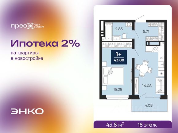 Успейте забронировать, пока действует скидка, предложение ограничено! Стоимость квартиры указана со скидкой, ваша экономия составит 968,250 руб. Информация по телефону, наши менеджеры вам все расскажут. Однокомнатная квартира с предчистовой отделкой в ЖК "Прео" на 6 этаже. Общая площадь: 42.02 кв.м., жилая: 11.57 кв.м., площадь просторной кухни-столовой: 18.89 кв.м. Все окна выходят на одну сторону. В квартире один балкон, один совмещенный санузел. Высота потолков 2.7 м. Квартира находится в корпусе 212. Дом монолитный, одноподъездный, высотой 21 этаж. На этаже 8 квартир. В подъезде 2 пассажирских и 1 грузовой лифт. Окончание строительства - 4 квартал 2026 года. Оформление сделки по договору долевого участия. Преображенский — один из самых привлекательных районов для жизни! Это полностью самостоятельный жилой район с точки зрения инфраструктуры. Преображенский находится между Московским и Червишевским трактами в квартале улиц Закалужская — Вьюжная — Александра Протозанова. Не нужно ждать, когда появится инфраструктура — переезжайте на всё готовое. Вблизи расположены действующие школа и детский сад. В этом году откроется еще один сад, а в следующем году — школа. По соседству с Преображенским запланировано строительство городского парка "Комарово" площадью 38 гектар. За 10 минут можно доехать на автомобиле до крупных ТРЦ: "Лента", "Кристалл", "Леруа Мерлен", "Метро" и "Ашан". С 2018 года в районе открыт Соседский центр — пространство, созданное для формирования добрососедской среды, совместного досуга, общения и реализации соседских инициатив. Здесь проходят встречи соседей, а также сами жители района организовывают мероприятия. Организатором такого события может стать любой желающий. В квартирах выполнена качественная предчистовая отделка. Гладкие стены с финишным выравниванием по маякам. Ровный потолок для установки натяжного потолка. Установлены пятикамерные окна с двойным стеклопакетом (3 стекла). Дизайнерские холлы с видеонаблюдением, безбарьерным и прозрачным входом всегда светло и спокойно. На первом этаже есть просторные колясочные, где все жители могут оставлять свои коляски и велосипеды. В Преображенском есть всё, что нужно для активного отдыха и занятий спортом. Мы сделали большое футбольное поле с безопасным покрытием. Также установили хоккейный корт, который оборудован по всем необходимым стандартам. Во дворах можно делать упражнения на специальных площадках с турниками. Весь район мы обустроили велодорожками, которые связаны в единый маршрут. У нас есть сухие фонтаны, бьющие из земли, деревья, веревки, сетки, скалодром, газон, песок и резинка — осталось просто дать своему ребенку право на свободную игру. По-настоящему хорошие дворы — это те, которые дети предпочитают соцсетям и телевизору. Аккредитация в банках: "Сбербанк России", ПАО Банк "ВТБ", ОАО "Альфа-Банк", ПАО "Банк Уралсиб", ПАО "Газпромбанк" и других. Продается квартира на улице Арктическая в городе Тюмень.