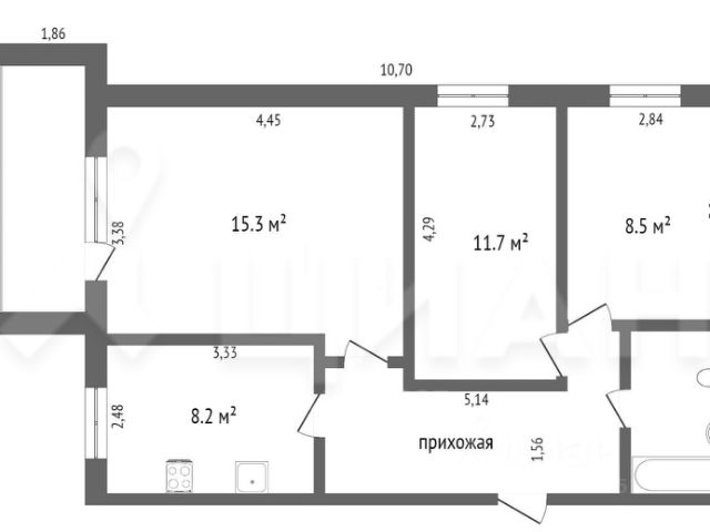 В квартире ремонт, остается все, что на фото (кроме стиральной машинки и холодильника). Балкон застеклен, большой и просторный.