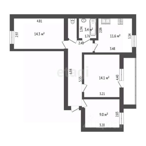 Гармоничная солнечная, светлая экологичная квартира в кирпичном доме, не угловая. Площадь квартиры 56м2+ 3,4м2 балкон.