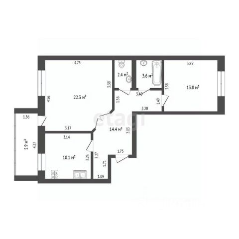 Квартира 3к 71м² (Кухня 20м²)
