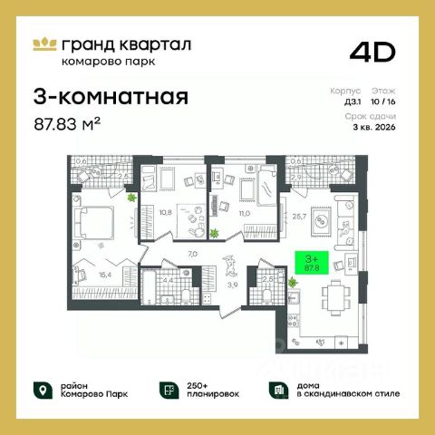 Продаётся 2-комнатная квартира в строящемся доме (1-Д3.1 (Глебова, 10)), срок сдачи: III-кв. 2026, общей площадью 65.52 кв.м., на 8 этаже. Компания 4D приступила к строительству нового жилого комплекса "Гранд квартал". Новый ЖК находится в зеленой зоне Калининского района, южнее микрорайона Тюменская слобода.