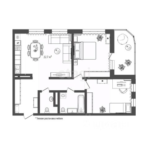 Уникальная особенность квартиры - высота потолка 3м! Стандартная высота в доме 2,7м.