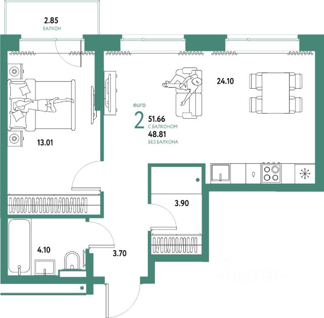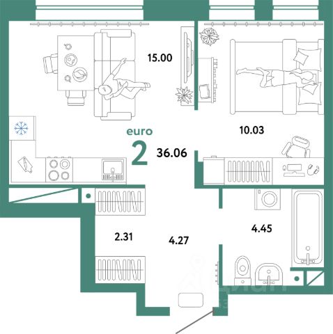Продается квартира с ремонтом в санузле! формата ЕвроДвушка в ЖК "Домашний", от топ-1 застройщика в Тюмени "Страна", дом Театральный.