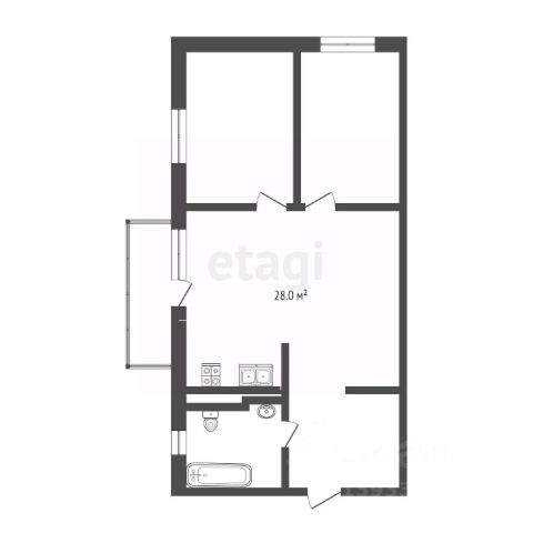 - коридор упирается во вход в кухню, из которой есть второй проход в комнату и на утеплённую лоджию.