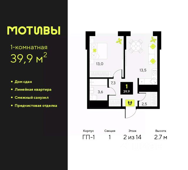 Просторная 3-комн. квартира с предчистовой отделкой в ЖК "Мотивы" на 2 этаже. Общая площадь: 78.7 кв.м. Высота потолков 2.7 м. Квартира будет сдаваться с предчистовой отделкой White Box: выровнены и оштукатурены стены, проведено электричество и отопление, установлены радиаторы. Вы также можете приобрести квартиру с ремонтом от застройщика, представленным в трех цветовых решениях Scandi, Wood и Coffee и включающим ламинат, обои под покраску, двери, натяжной потолок и санузел с сантехникой. При желании вы можете заказать отделку под ключ, варианты возможных решений представлены в альбоме фотографий. Квартира находится в корпусе ГП-2. Дом монолитный, одноподъездный, высотой 7 этажей. На этаже 5 квартир. В подъезде 1 пассажирский и 1 грузовой лифт. Строительство завершено, дом сдан в 4 квартале 2024 года. Оформление сделки по договору купли-продажи. Закрытая от автомобилей территория, безопасный двор и камеры видеонаблюдения - гаранты вашего спокойствия. Квартал будет располагать богатой инфраструктурой: на первых этажах разместятся магазины, пекарни, кофейни, пункты выдачи, аптеки, детские центры, цветочные салоны и многое другое, что сделает жизнь поистине комфортной. Рядом находится парк общей площадью почти 5000 м², в котором располагаются локации для игр и отдыха жителей, здесь можно совершить утреннюю пробежку или прогуляться после рабочего дня. В парке есть зона воркаута с тренажерами для взрослых, игровые комплексы с горками и канатный комплекс для детей разных возрастов, качели и лавочки для отдыха, площадки для командных видов спорта и для панна-футбола. В ЖК "Мотивы" всё продумано до мелочей: светлые холлы входных групп, оформленные в едином стиле, просторные колясочные, лапомойки для питомцев. На территории комплекса находятся 2 8-ми этажных паркинга и более 1000 м/м на открытой парковке. Жилой комплекс находится в одном из экологически благоприятных районов Тюмени, недалеко от Плехановского бора. При этом до центра города можно добраться за 15 минут, а до международного аэропорта Рощино за 13 минут. Окончание строительства: ГП 1, 2, 3, 4 сдача до конца 2024 года, ГП 6, 7, 8 сдача 2 квартал 2026 года. #ZmFFMT