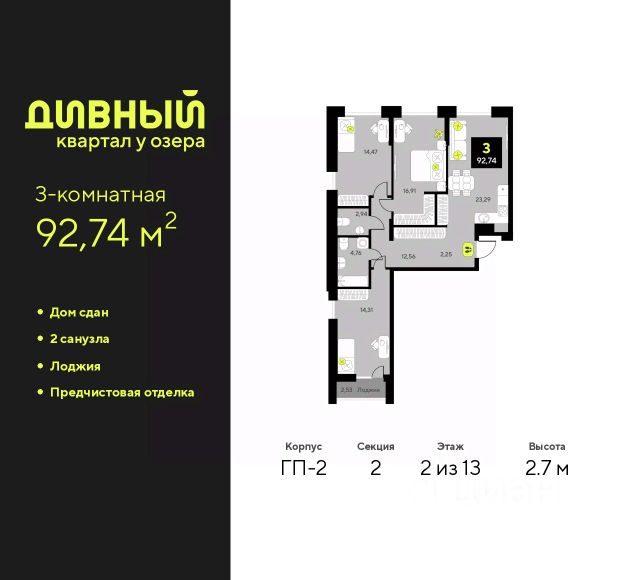 Просторная 1-комн. квартира с предчистовой отделкой в ЖК "Айвазовский City" на 2 этаже. Общая площадь: 47 кв.м., жилая: 10.6 кв.м., площадь просторной кухни-столовой: 24.1 кв.м. Все окна выходят на одну сторону. В квартире один совмещенный санузел. Высота потолков 2.7 м. Дом монолитный, многоподъездный, переменной этажности, от 14 до 24 этажей. Квартира находится в 5-й секции высотой 14 этажей в корпусе ГП-8. На этаже 5 квартир. В подъезде 1 пассажирский и 1 грузовой лифт. Окончание строительства - 3 квартал 2026 года. Оформление сделки по договору долевого участия. Новый жилой район располагается в живописном месте на берегу Туры в центральной части города. Принципиально новое пространство для жизни в центре современного города для тех, чьи мечты сбываются, кто нацелен на постоянный рост, перемены к лучшему для себя и своих близких. Каждая деталь Айвазовский City вдохновляет и заряжает на новые свершения: авторская архитектура, сбалансированная продуманная инфраструктура, дизайнерские дворы со спортивными и детскими площадками, парковые зоны с фонтанами, водный канал, украшающий центральный прогулочный маршрут района и многое другое. В 2019 года проект стал лауреатом престижной премии Urban Awards 2019 в номинации "Лучший строящийся региональный жилой комплекс бизнес-класса". Главная особенность Айвазовский City - соседство разных архитектурных школ в рамках одного дома. Изысканная классика, выразительная эклектика и оригинальный модерн - жить в одном из таких домов настоящий повод для гордости. Айвазовский City это идеальное сочетание комфорта, технологий и развитой инфраструктуры. Вход в подъезд возможен с улицы и со двора. Отправляясь на работу или за покупками, жители могут выйти с внешней стороны дома, а для прогулки с ребенком со стороны двора. Экологически чистые материалы и энергосберегающие технологии, качественное освещение общественных зон, видеонаблюдение по всей территории жилого района (в том числе в подъездах, лифтах и в подземном паркинге), закрытые дворы с доступом только для жителей Айвазовский City. Часть домов в Айвазовский City будут оснащены подземным паркингом. Востребованный в нашем климатическом поясе формат хранения автомобилей защитит собственность владельца в любое время года. Аккредитация в банках: "Сбербанк России", ОАО "Альфа-Банк", ПАО "Газпромбанк", ПАО Банк "ВТБ", АО "ДОМ.РФ" и других. #ZWAEom Купить квартиру на улице Пожарных и Спасателей в городе Тюмень.