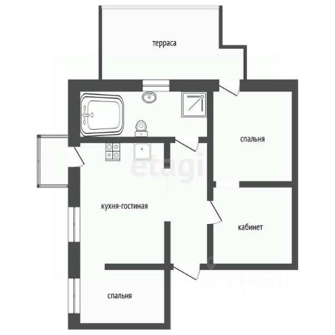 В квартире остается мебель: кухонный гарнитур, шкаф для хранения одежды, спальные места, а также бытовая техника: кондиционер, холодильник, посудомоечная машина, водонагреватель.